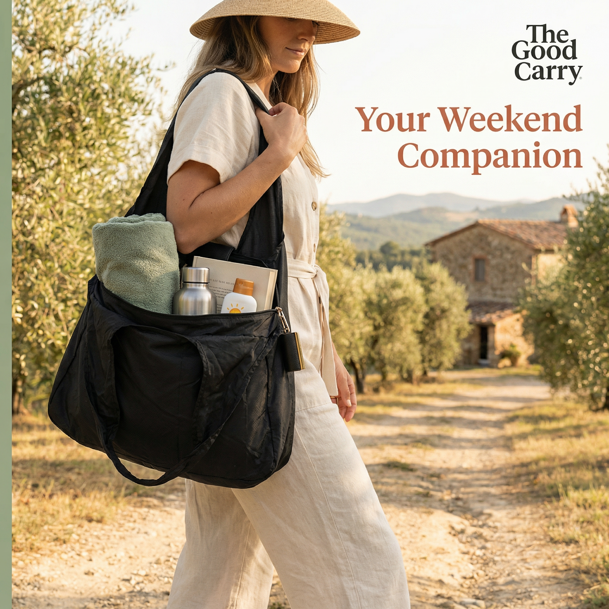 Grocery runs. Travel days. Beach trips. Gym sessions. The Good Carry adapts to your life. Clip it to your keys, bag, or luggage—it's always with you, always ready. From daily errands to weekend adventures, one bag does it all.